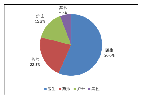 按照報告人職業統計,醫生占56.6%,藥師占22.3%,護士占15.3%,其他職業占5.8% (圖4)。