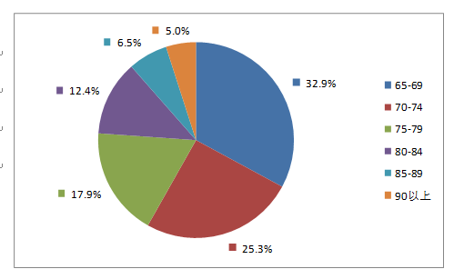 2019年老年患者藥品不良反應/事件報告中,男女患者比為0.95:1。老年患者年齡分布中65-69歲老年患者報告占32.9%,70-74歲老年患者報告占25.3%(圖15)。